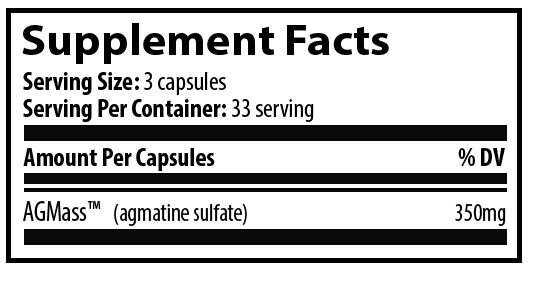 Agmatine Sulfate - 350 mg - is one of the newest and most exciting dietary supplements with many physiological benefits, including as a pre-workout agent to support overall athletic performance. Agmatine sulfate (as AGmass ™) is a biogenic amine and is the highest quality form of agmatine sulfate on the market, which has been HPLC tested for purity and potency. The agmatine used in Submission Science's product is not derived from 1,4-Diaminobutane, so it does not contain the major impurity 1,4-diguanidinobutane found in other types of Agmatine on the market.