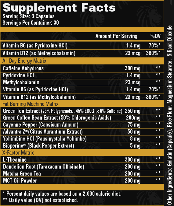 Fat Burning Machine Matrix is a formula that burns fat. It contains green tea extract to increase metabolism, green coffee bean extract, which is an excellent source of chlorogenic acid (reduces insulin secretion in overweight people). Cayenne Pepper effectively increases thermogenesis by reducing the overall level of body fat. Advantra Z, known as bitter orange extract, is a natural metabolism booster that increases energy expenditure. It increases lipolysis (breakdown of stored fats), suppresses the appetite and stimulates the metabolism. Advantra Z is standardized to 30% synephrine and has been well documented as a safe and effective fat burning supplement.