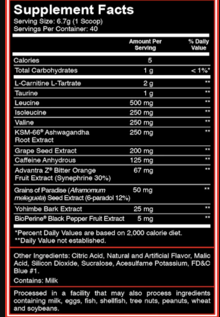 DNM Nutra Amino Burn 268g fat burner with amino acids composition: