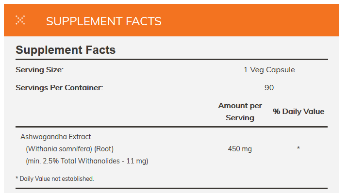 NowFoods Ashwagandha 450 mg 180 caps composition: