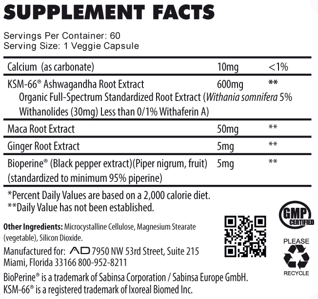 Find the ingredients of Anabolic Designs Ashwagandha: