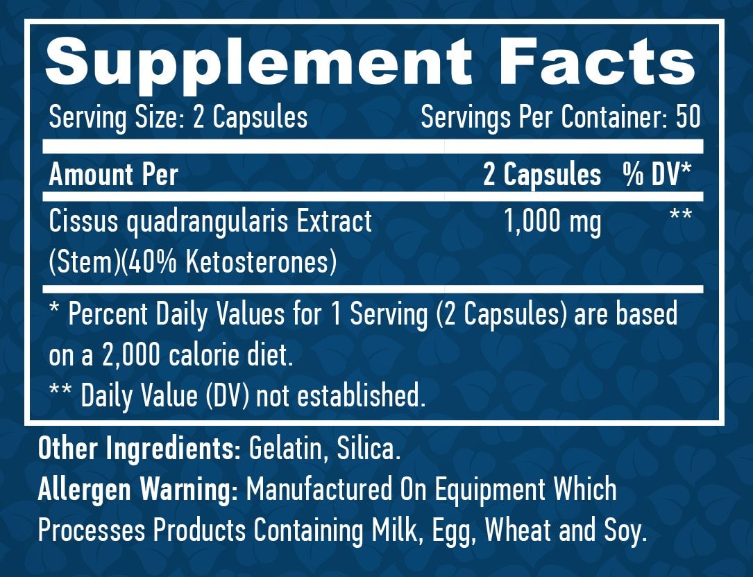 Cissus Quadrangularis is a popular herbal supplement that has been used for centuries to treat various diseases, mostly related to the musculoskeletal system. It is also known as Indian Balsam, European Cissus, Persian Cissus and Assyrian Willow Bark. The active components of this extract are flavonoids and tannins, which have numerous medicinal properties. The Haya labs supplement is standardized to 40% ketosterones with potent biological effects. The extract reduces inflammation, helps improve blood flow to tissues, boosts immunity and effectively accelerates the fight against infections.
