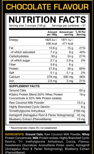 Dedicated Nutrition Gainz high-quality bulk gainer contains slowly and quickly absorbing protein in a unique blend of 50% Whey Concentrate and 50% Milk Isolate (Casein). The supplement based on carbohydrate and protein ingredients is intended for physically active people who are building lean muscle mass. The new Gainz gainer provides a high dose of energy obtained from dextrose, WPC whey protein concentrate, coconut milk powder and casein. The addition of the patented Astragin and Pterostilbene formula ensures proper carbohydrate metabolism and is responsible for a strong antioxidant effect. Anhydrous Betaine in the form of TMG increases the synthesis of nitric oxide, improves blood circulation and intensifies the feeling of muscle pump, giving the effect of full muscles.