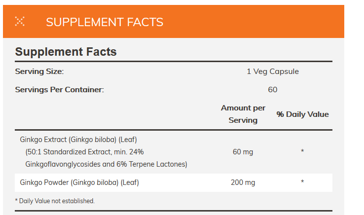 - Now Foods Ginkgo Biloba 60mg 120 caps