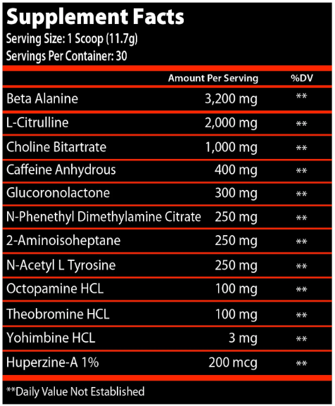 DNM Nutra Helios Pre-Workout 351g DMHA dosage: