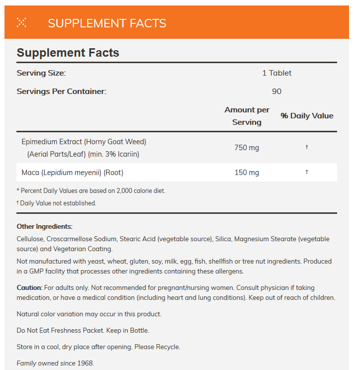- Now foods Horny goat weed extract 750mg 90 caps epimedium maca libido