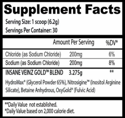 - Insane Labz Insane Veinz Gold 180g infused vascularity powerhouse nitrosigine