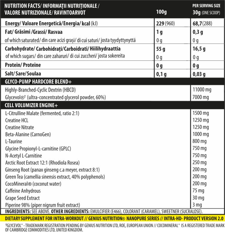 Genius Nutrition Intra HD 750 g intra workout composition: