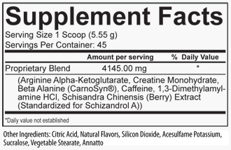 1,3-Dimethylamylamine (Geranium [Stem]) - works on the nervous system, causing an increase in energy levels and euphoria that lasts for a long time after consumption. Its action increases concentration and training intensity, allowing for the maximum use of the body's potential.