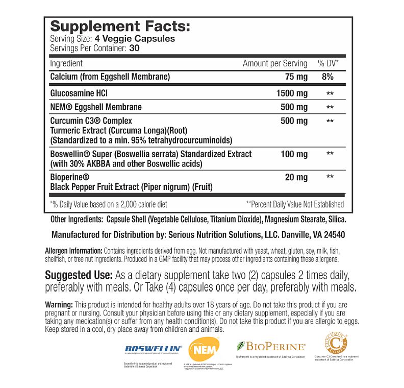 NEM - is a natural component of the egg shell membrane that has been used in joint health. Numerous studies show its beneficial properties in terms of joint flexibility in just 7 to 10 days. NEM naturally contains major joint support nutrients including chondroitin sulfate, hyaluronic acid, collagen, and other glycosaminoglycans.