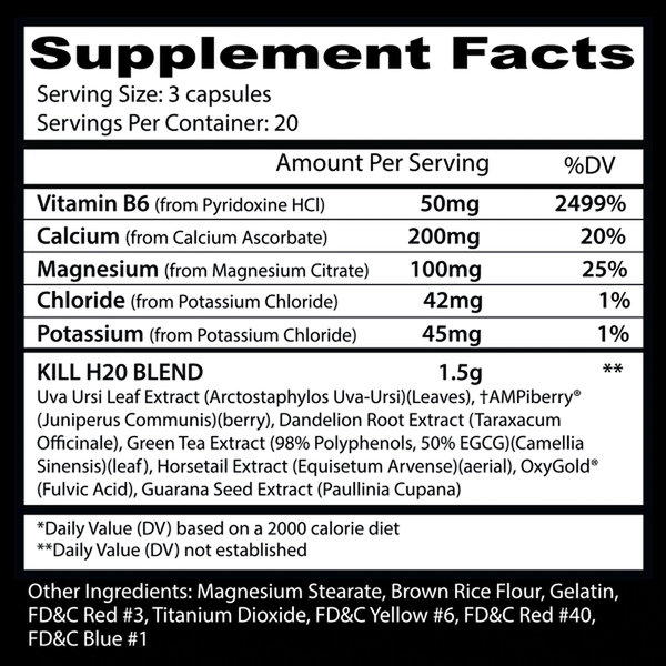 Dosage of Insane Labz® Kill H2O diuretic supplement: