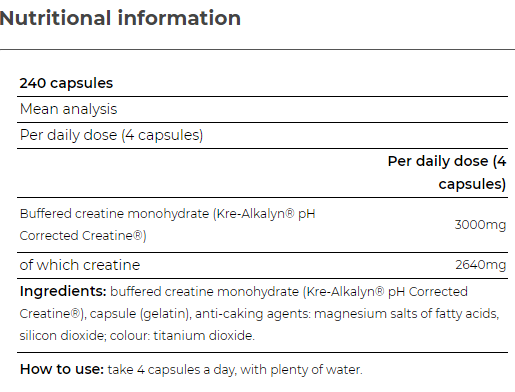 This process ensures greater stability of the preparation in the acidic environment of the gastrointestinal tract and reaches muscle cells in an unchanged form. Creatine monohydrate is one of the most studied forms of creatine in the world and has been thoroughly tested in terms of effectiveness, proven in many studies of increased performance, including for both physically active people and recreational athletes. Kre-ALKALYN® is one of the most advanced forms of creatine available on the market today. Due to the high pH, Kre-Alkalyn® is released into the muscles with maximum power, resulting in increased sports performance and increased ATP energy production. The supplement is recommended for any athlete doing high intensity training.