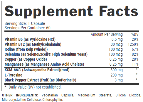 The advanced fat burner supports the functioning of the thyroid gland. A high dose of KSM-66® Ashwagandha helps to improve the functioning of the thyroid gland and increases the body's ability to adapt to stress conditions. It contains essential minerals that are essential in the formation of thyroid hormones. It provides the body with vitamin B6, B12, iodine, selenium, copper and manganese, which in combination with ashwagandha support fat loss, promote faster metabolism and proper functioning of the thyroid gland.