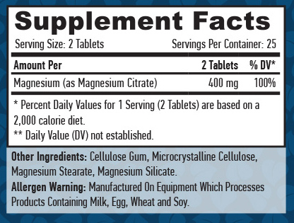 The supplement provides 400 mg of highly bioavailable magnesium citrate per daily serving. Magnesium is essential for the proper functioning of the human body. It is the main intracellular ion. It is a cation, or positively charged ion, which is involved in over 300 enzymatic reactions occurring in our body's cells.