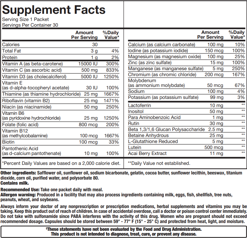 VPX Medivin 30 sachets of vitamins and minerals for athletes are: