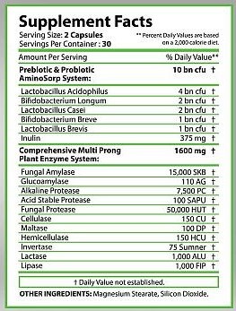 Fungal Protease - these are plant-derived enzymes that break peptide bonds in proteins, conditioning their digestion. Amino acids resulting from the decomposition of proteins participate in many important biochemical reactions in the body, acting, among others building material for connective tissue and substrates for the synthesis of neurotransmitters, hormones and enzymes.