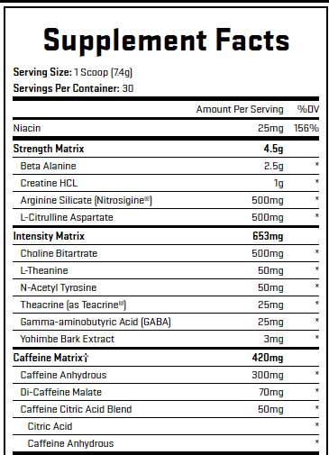 1 scoop 30 minutes before training. First portion ½ scoops to test the tolerance to the active ingredients.