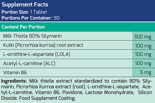 L-ornithine L-aspartate - reduces fatigue, ensures the proper functioning of the immune system and promotes the loss of unnecessary kilograms. Kutki root extract (Picrorhiza kurroa) is a natural plant of Ayurvedic medicine with a stronger effect than silymarin - flavonoid milk thistle. Has strong anti-inflammatory and hepatoprotective effects.