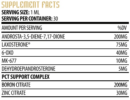 Laxosterone - a patented extract derived from the Smilax scobinicaulis root (5-alpha-hydroxy-laxogenin). When delivered to the human body, it has an anabolic-androgenic effect, the ratio of which is comparable to Anavar. It manifests anti-catabolic properties by lowering cortisol levels. Thus, it supports the synthesis of muscle tissue proteins and its subsequent protection against degradation. Probably mainly due to the interference with the activity of the thyroid gland, it supports fat loss. Additionally, it has a strong anti-inflammatory effect.