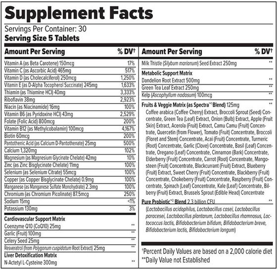 Finaflex Pure Multi Ultimate Daily Multivitamin 120 caps multivitamins for athletes composition: