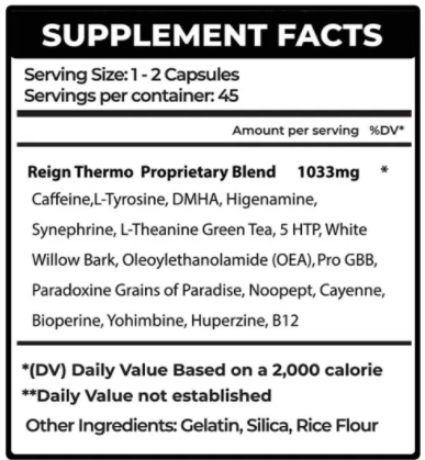 Reign Thermogenic Formula 90 caps fat burner with nootropics