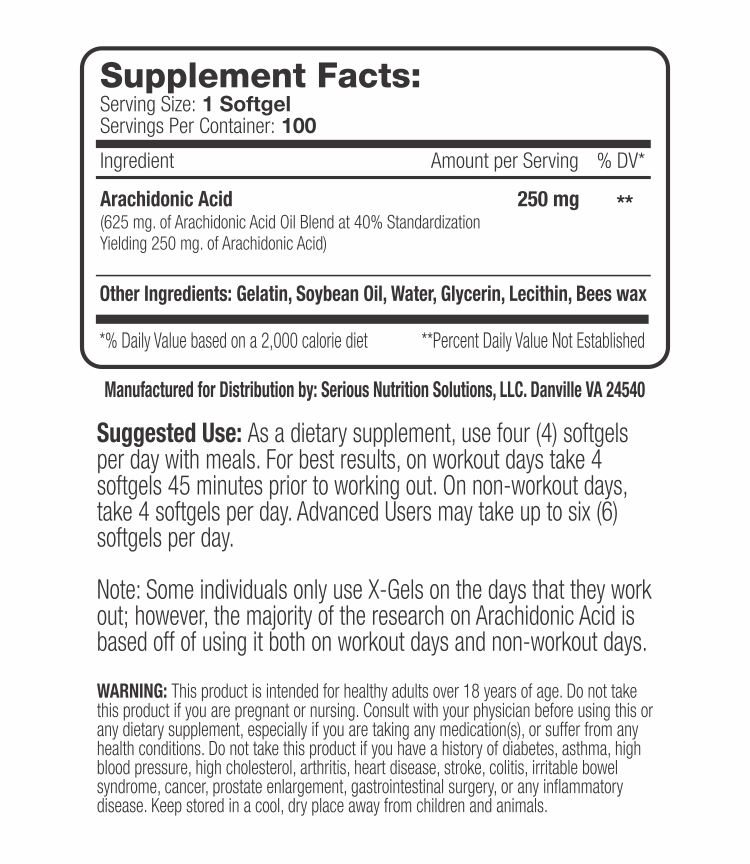 - SNS X-Gels 100 caps lean musle strength arachidonic acid
