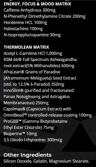 Brawn Nutrition Thermo-Lean V2 180 caps fat burner composition: