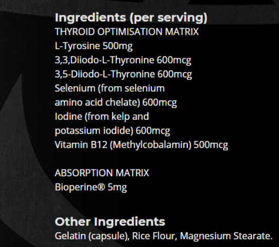 Brawn Nutrition Tyro-Lean V2 120 caps improve thyroid function composition: