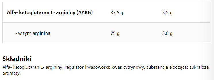 UNS AAKG 300g is a pumping pre-workout. UNS AAKG is a dietary supplement designed for athletes focused on the highest pre-workout efficiency. Using a solid dose of as much as 3500 mg of arginine alpha-ketoglutarate in a serving of a delicious and highly absorbable functional drink, it quickly supplements the diet with this essential amino acid for athletes.