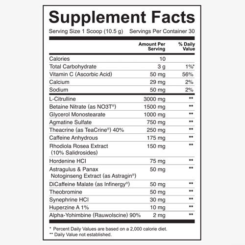 Pre-workout affects your well-being, increases fat burning, increases endurance, adds energy, promotes endurance and allows you to achieve a muscle pump. The US version with the addition of high-dose alpha yohimbine allows you to keep caffeine levels low while still benefiting from all the stimulating effects. A solid dose of active ingredients allows for greater performance, supports the production of creatine in the body and reduces muscle soreness.